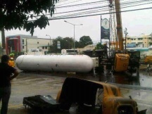 Camión con 7,400 galones de gas se vuelca en la 27 de Febrero.