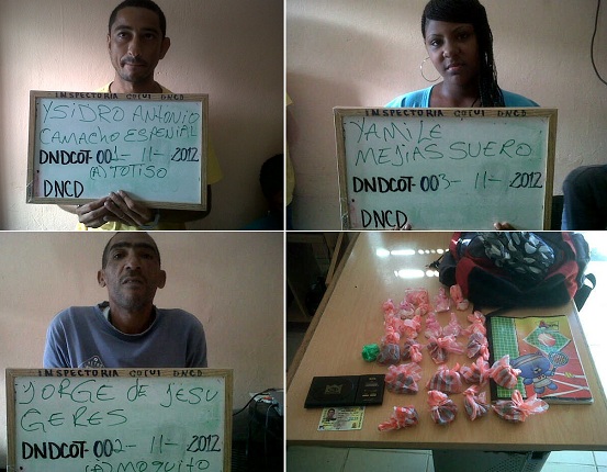 Los detenidos fueron identificados Isidro Antonio Camacho Espinal, alias Totiso; Jorge de Jesús Jerez, apodado Cañaño; así como una menor, de 17 años, a quien no se identifica por razones legales. El arresto se produjo en una vivienda sin número de la calle 3 del citado municipio, perteneciente a la Provincia Sánchez Ramírez.