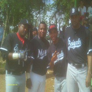 De izquierda a derecha: de la Primera Brigada, Henry Fr’ias (Equis) segundo, Luis Manuel Pascal (Cacón) tercero y Rafael Roque,cuarto, líderes en jonrón en el encuentro.