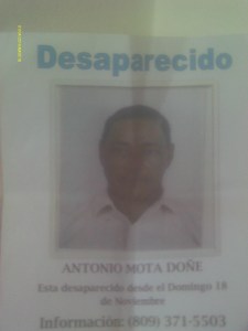Se recuerda que Antonio Mota, que residía en le barrio La Esperanza de este municipio, salió el pasado domingo a las 5:00 de la tarde a su lugar de trabajo, pero nunca llega a su destino.