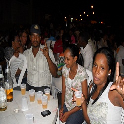 La actividad que inició quince minutos después de las 8:00 PM (estaba pautada para las seis) se llevó a cabo en la calle marginal que lleva hasta la empresa Cereales en General (Avena Quaker), frente a la fábrica de vidrios y próximo al destacamento de la Policía Nacional en el kilómetro 27 y medio de la autopista Duarte.