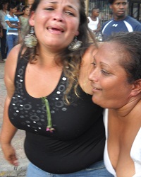En medio de una histeria colectiva que se apoderó de un grupo de amigos íntimo del occiso, que se resistían a que sea enterrado el cadáver, dos hombres hicieron varios disparos de pistolas hacia arriba ( al aire) para dispersar a los que bloqueaban la entrada del ataúd.