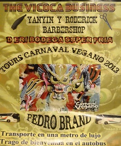 The Vicoca Business, Yanyin & Róderick Barber Shop y D’ Eri Bodega Super Fría se unieron para este bonche, con lo que han denominado Tour Carnaval Vegano 2013 PEDRO BRAND donde ofertan un paquete de beneficios interesentas a los munícipes que deseen acudir de forma segura al carnaval vegano.