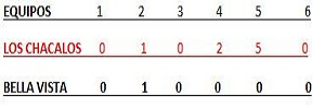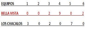 A primera hora del día Los Salseros de Bella Vista, con su lanzador Yeily Rivas venció 13 carreras por 12 a Los Chacalos. El pitcher derrotado fue Angel Figueroa, quien fue relevado por Yunior Ureña.