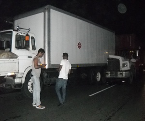 PEDRO BRAND.- Un accidente que involucró tres vehículos pesados y en el cual no hubo personas lesionadas ocurrió anoche en la estación del Peaje de la autopista Duarte en este municipio.