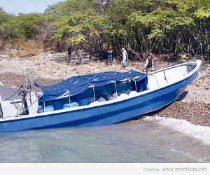 La embarcación de nombre «Sol Playero» mide unos 30 pies de eslora y lleva un motor de 65 caballos de fuerzas. En su interior fueron hallados 18 galones de 10 litros, color negro, uno de ellos con combustible y el resto vacío