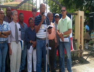 VILLA ALTAGRACIA.-Un conjunto de organizaciones representativas de este municipio realizaron un acto en repudio del contrato suscrito entre la empresa minera Barrick Pueblo Viejo y el Estado dominicano y en respaldo a la decisión del presidente Danilo Medina de revisar ese acuerdo.