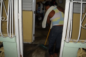 Anoche, todos los miembros de la familia Figueroa-Valdez, encabeza por la jefa del hogar, la señora «Ñoñola», tuvieron que fajarse a sacar el agua que había penetrado hasta el interior de su casa, utilizando escobas y escobillones.