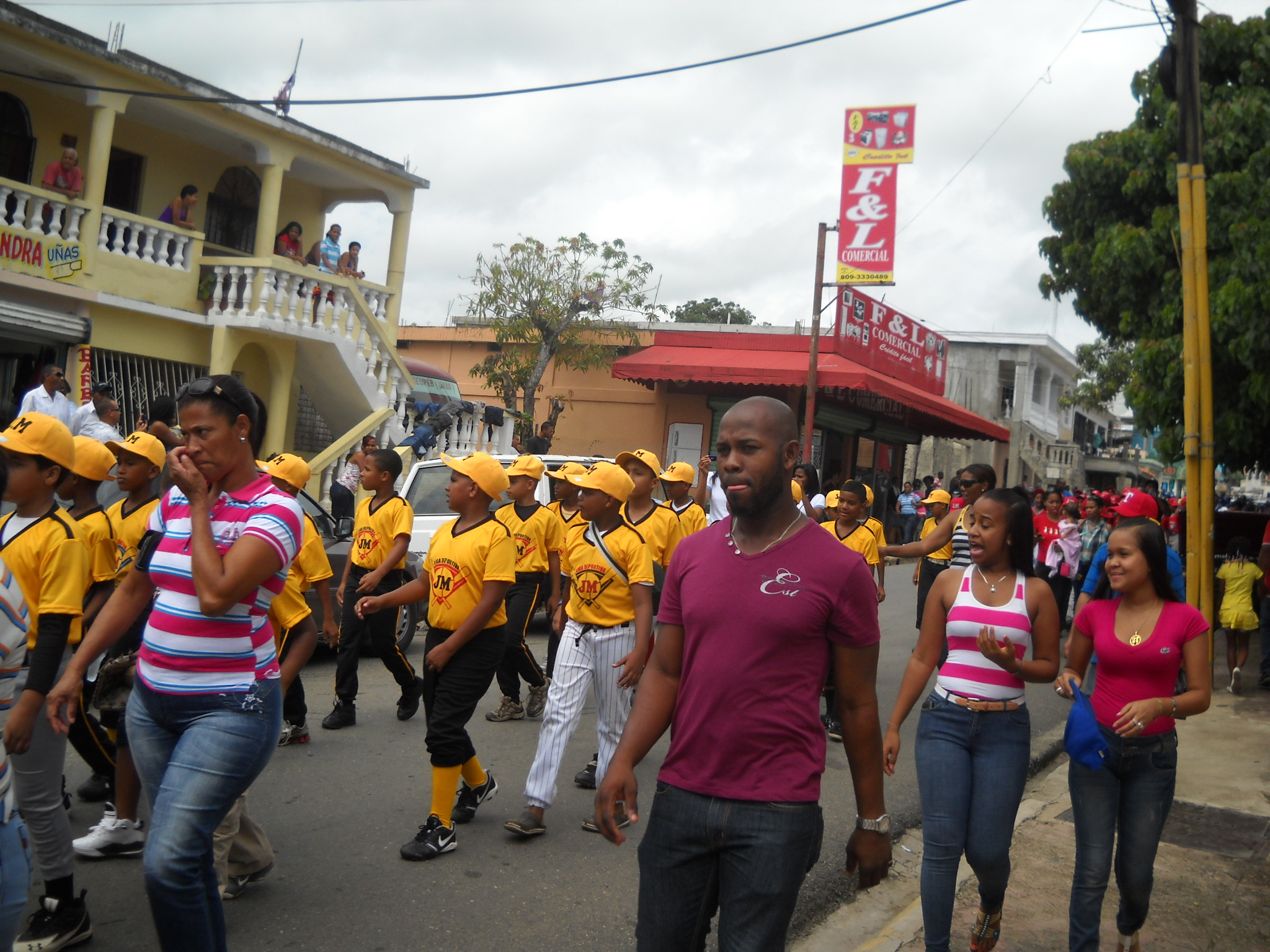 El recorrido inició en el cruce del kilómetro 25 de la autopista Duarte y recorrió la calle Las Mercedes hasta llegar al campo deportivo donde se jugarán todos los domingos cada partido.