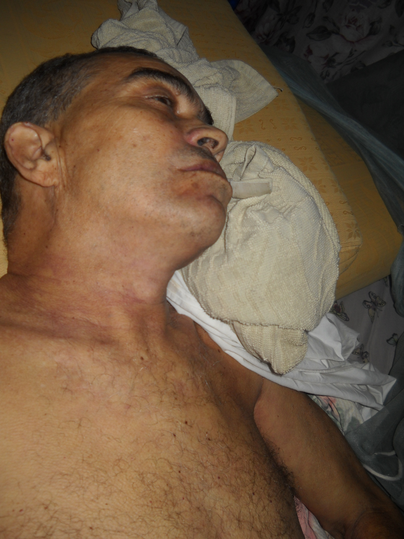 Bambi, de 57 años de edad fue encontrado a las 8: 00 A.M. acostado con los pantalones puesto y sin camisa por vecinos que tocaron la puerta de la casa al notar que éste aún no se había levantado como era de costumbre.