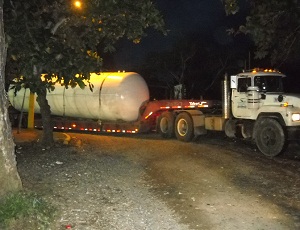 Llevan tanque almacén de combustible donde construyen envasadora de gas en Pedro Brand.