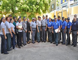 La jornada de trabajo, que incluyó charlas sobre derechos humanos, prevención al uso y distribución de drogas, violencia intrafamiliar, seguridad, convivencia y valores, entre otros temas, inició a las 8:00 de la mañana con el izamiento de bandera en el Centro Educativo Mauricio Báez.