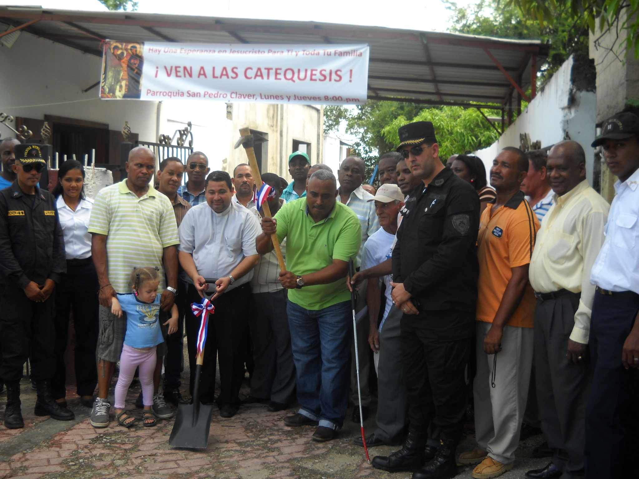 PEDRO BRAND.- El alcalde municipal Ramón Pascual Gómez Abreu (El Mello) dio este martes el primer picazo para dejar iniciado la construcción de la nueva parroquia San Pedro Claver en este municipio.
