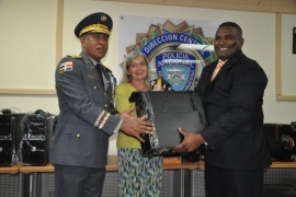 La Embajadora Kreiss al hacer la entrega destacó los avances alcanzados por la Policía dominicana en la lucha contra el narcotráfico y el crimen organizado.