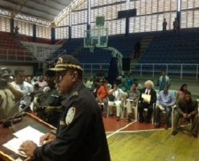 «A partir de ahora, los comandantes de aquí tendrán que reunirse con los dirigentes comunitarios, para escuchar las distintas problemáticas y buscar soluciones conjuntas», precisó el mayor general Castro Castillo al hablar a los presentes en el encuentro comunitario, celebrado en el polideportivo del Club San Martin de Porres.