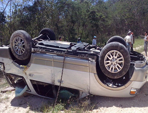 SANTO DOMINGO.- El periodista Miguel Guerrero y su esposa salieron ilesos este viernes de un accidente de tránsito que sufrieron cuando se desplazaban por la autopista del Este, que provocó que el vehículo en que viajaban diera varias vueltas y quedará con las gomas hacia arriba.