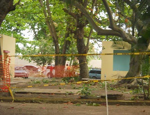 Desde el pasado miércoles un equipo de hombre trabaja en la poda de árboles en el patio interno del centro hospitalario para evitar que las ramas den sombra a los techos que en una primera fase de trabajo se le aplicará impermeabilzantes para corregir las filtraciones de los mismos.