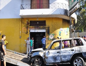 SANTIAGO.- Una jeepeta y una motocicleta resultaron quemadas y un supermercado parcialmente afectado en el sector Los Pepines de esta ciudad, tras la explosión de un tanque de gas instalado en la parte trasera del vehículo.