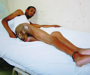 De ahí en adelante el joven perdió la capacidad de caminar, tiene llagas en las nalgas, se defeca y orina encima de manera involuntaria por lo que requiere de una atención especial de parte de sus familiares que tienen que bañarlo y cambiarle los pampers que usa con mucha frecuencia.