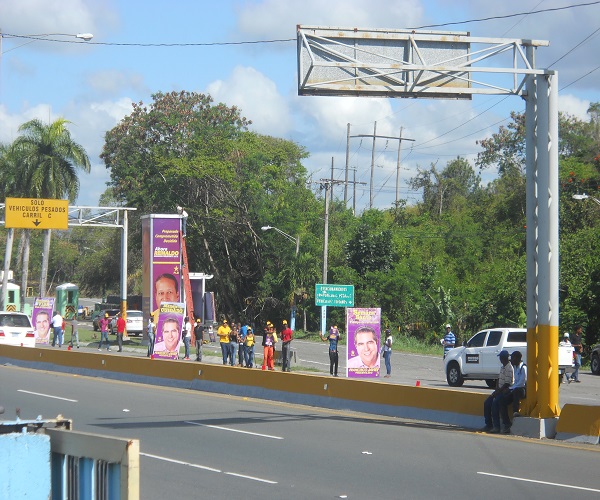 Equipos de propaganda de los aspirantes presidenciales del Partido de la Liberación Dominicana (PLD), el presidente del Senado, Reinaldo Pared Pérez y el ministro de Turismo, Francisco Javier García, se apostaron desde ayer cerca del Peaje de la autopista Duarte para promover las aspiraciones de sus respectivos precandidatos.