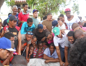 PEDRO BRAND.- Como ya es una costumbre cada Viernes Santo decenas de moradores del barrio La Esperanza en este municipio se reúnen, para en una improvisada gallera a la intemperie realizar apuestas en peleas de gallos, en la que no falta el consumo de bebidas alcohólica.