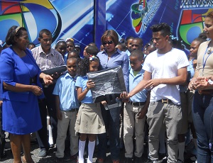 Luego de recibir su regalo, la estudiante agradeció al señor Juan Ramón Gómez Díaz, presidente del Grupo Telemicro y a la diputada Gertruds Ramírez Cabral por el obsequio recibido.