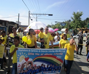 VILLA ALTAGRACIA.- Las Estancias Infantiles Comunitarias de este municipio, celebraron la novena caminata con motivo del “Mes de Prevención al Abuso Infantil” ayer tarde partiendo de su local del barrio INVI hasta el Parque Municipal.