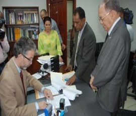 La documentación fue entregada por el delegado político del PRD ante la JCE, José Miguel Vásquez García, y Julio Maríñez, presidente de la Comisión Organizadora de la Convención, a Hilario Espiñeira, secretario general de la JCE.