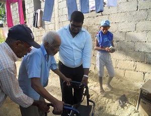 VILLA ALTAGRACIA.- La Fundación Alcántara Brito (Funab), hizo entrega de varios dispositivos y ayudas a personas envejecientes y con discapacidad en las comunidades del Caobal y Los Pinedas,