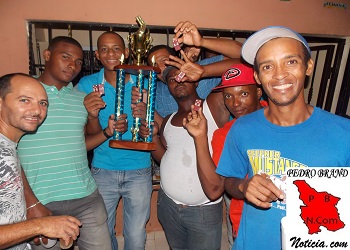 PEDRO BRAND.- Los integrantes de Club de Dominó Las Mercedes celebraron anoche con mucho entusiasmo su triunfo de campeones del recién finalizado torneo barrial de este pasatiempo amistoso que organizó para fines de recaudación de fondos, el Club Recreativo de Dominó «Los Estrategas» del barrio Mejoramiento en Pedro Brand.