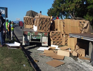 El accidente de la patana, perteneciente a la compañía Transporte García, la cual iba cargada de cartones, no dejó heridos y el chofer también salió ileso.
