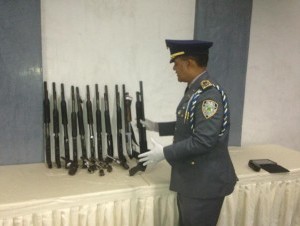SANTO DOMINGO.- La Policía Nacional informó este martes que decomisó un arsenal de 11 escopetas, tres revolvers y una pistola con numeraciones clonadas, durante un allanamiento donde fue apresado un hombre, en una vivienda donde opera una compañía de seguridad privada que no tenía permiso, en la autopista San Isidro, del municipio Santo Domingo Este.
