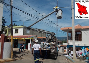 PEDRO BRAND.- La Unidad de Electrificación Rural y Suburbana (UERS), que dirige la licenciada Thelma Eusebio de López, realizó este lunes cambios e instalaciones del alumbrado de varias calles en diferentes barrios de este municipio.