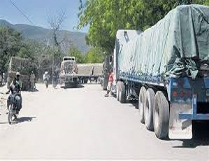 FRANJA FRONTERA DOMINICO–HAITIANA.– Un total de 27 patanas y camiones cargados de mercancías se encuentran retenidas en la cercanía de la Dirección de Aduanas de Haití, lo que ha creado descontento entre los conductores dominicanos que debían entregar miles de artículos.
