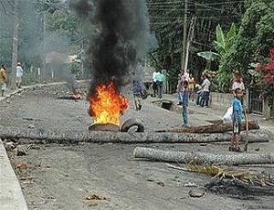 Los residentes en la comunidad, hombres, mujeres y hasta niños colocaron obstáculos en las vías públicas para impedir el tránsito de los vehículos luego que varios agentes policiales ultimaran de dos balazos en la cabeza a José Manuel García Espinal, de 18 años de edad.