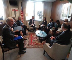 El canciller Andrés Navarro sostuvo importantes encuentros por separados con los señores Tom Malinowski, Thomas Shannon, del Departamento de Estado y la congresista demócrata Nancy Pelosi, a quienes expuso los avances de la nueva estrategia de política exterior dominicana, con marcado énfasis en el irrestricto respeto a los derechos humanos.