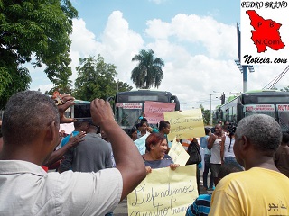 PEDRO BRAND.- Un grupo de usuarios del transporte público de pasajeros en Pedro Brand montaron este sábado un piquete para que varias unidades de autobuses que fueron incorporadas al corredor Duarte, de la ruta de guaguas 22-28, que dirige el sindicalista Juan Fernando Núñez (Apache), no sean sacada del municipio como pide la Asociación de Dueños y Choferes de Carros Públicos de Pedro Brand (ASOCHODUPE).