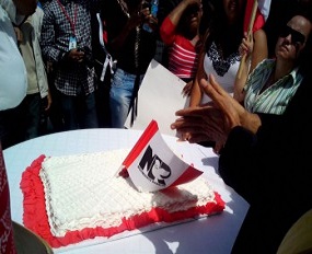 Hubieres llevó el bizcocho para celebrar un año de haber entregado toda la documentación para que la JCE reconozca su partido, el Movimiento Rebelde.