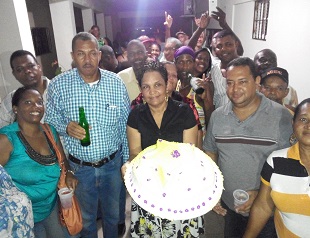 PEDRO BRAND.- La aspirante a alcaldesa del municipio Pedro Brand, licenciada Mirtha Elena Pérez (La Popy), estuvo ayer de cumpleaños y por ese motivos miembros de su proyecto político le hicieron un “asalto” sorpresa para festejar con ella tan significativa fecha.