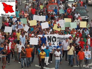 Durante el recorrido que una gran mayoría lo realizó a pies y otros en motocicletas, carros, camionetas, y yipetas, se iban lanzando consignas pidiendo que la justicia deje libre a De Los Santos Solis.
