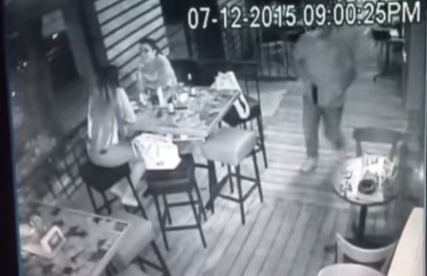 Luego se movió a la mesa de dos clientes, y sin mostrar el arma, empezó a despojarlas de sus pertenencias, logrando llevarse las carteras, celulares y objetos de valor; en el video se observa cuando una de ellas conversaba con el alegado ladrón, como si quisiera resistirse al atraco, por lo que el individuo sacó la pistola para poder continuar con el hecho.