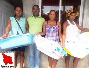 PEDRO BRAND.- El aspirante a Concejal por el Partido Revolucionario Moderno (PRM) en Pedro Brand, Ramón Suárez (El Guardia), entregó esta mañana tres canastillas a igual cantidad de mujeres embarazada que le habían hecho la solicitud.