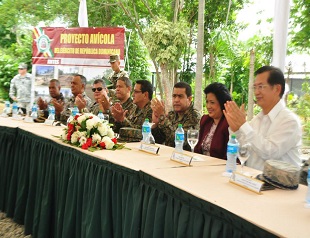 “Comenzamos primeramente por la frontera con el proyecto de Los Cacaos y Guaroa y ahora estamos ejecutando en la Primera Brigada de Infantería del Ejército la cría de chivos, pollos e invernaderos, para posteriormente firmar un acuerdo con el Fondo Especial para el Desarrollo Agropecuario (FEDA) para llevar estos proyectos a la Dirección General de Entrenamiento Militar y a la Comandancia General de la Fuerza Aérea”, destacó.
