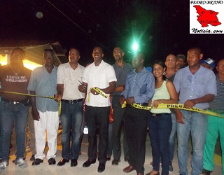 PEDRO BRAND.- El regidor por el Partido Revolucionario Moderno (PRM), Roberto Carlos Vásquez (Jipi) encabezó esta noche el corte de cinta para dejar inaugurado el saneamiento de una cañada y construcción de un pequeño badén que cruza frente a su residencia del kilómetro 28 de la autopista Duarte, obra que dijo hizo con recursos propios y la ayuda de otros munícipes del sector.