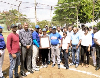 PEDRO BRAND.- Los organizadores del Tercer Torneo Municipal de Softbol que se lleva a cabo en este municipio, entregaron ayer un reconocimiento a la licenciada Mirtha Elena Pérez (La Popy), aspirante a la Alcaldía del municipio Pedro Brand por el Partido de la Liberación Dominicana (PLD).