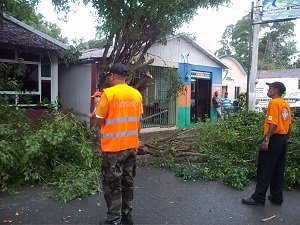 Brigadas de los Bomberos, la Defensa Civil y el Ayuntamiento trabajan en el retiro de los escombros y árboles que han obstaculizado algunas de las vías, aunque no se han reportado daños físicos, las lluvias también inundaron algunas viviendas.