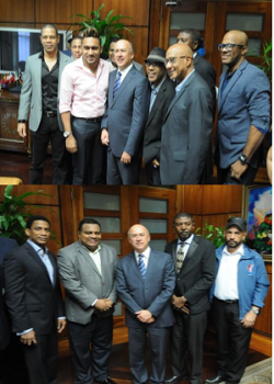Domínguez Brito recibió la comisión en su despacho, donde estuvieron presentes los artistas Pochy Familia, Ramón Orlando, Xiomara Fortuna, Dionis Fernández, Chiquito Team Band, entre otros.