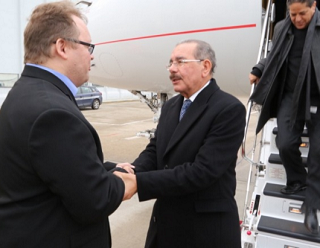 El Jefe de Estado dominicano llegó acompañado por los ministros de Relaciones Exteriores, Andrés Navarro y administrativo de la Presidencia, José Ramón Peralta.