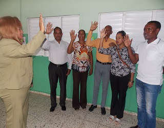 El juramento le fue hecho por la recién elegida secretaria general de la seccional del Colegio de Abogados de la provincia Santo Domingo, licenciada Lucía Florentino, durante un sencillo acto que se llevó a cabo en el Centro Educativo Pedro Brand en este municipio.