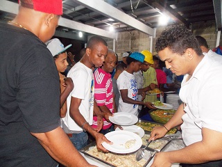 Los empleados y las personas que fueron invitadas pudieron disfrutar de una rica cena buffet, que incluía sabrosos platos como pechugas de pollo en salsa bechamell, pastelón de berenjena, moro de gandules, arroz amarillo, ensalada verde, vegetales salteados y carne de cerdo.
